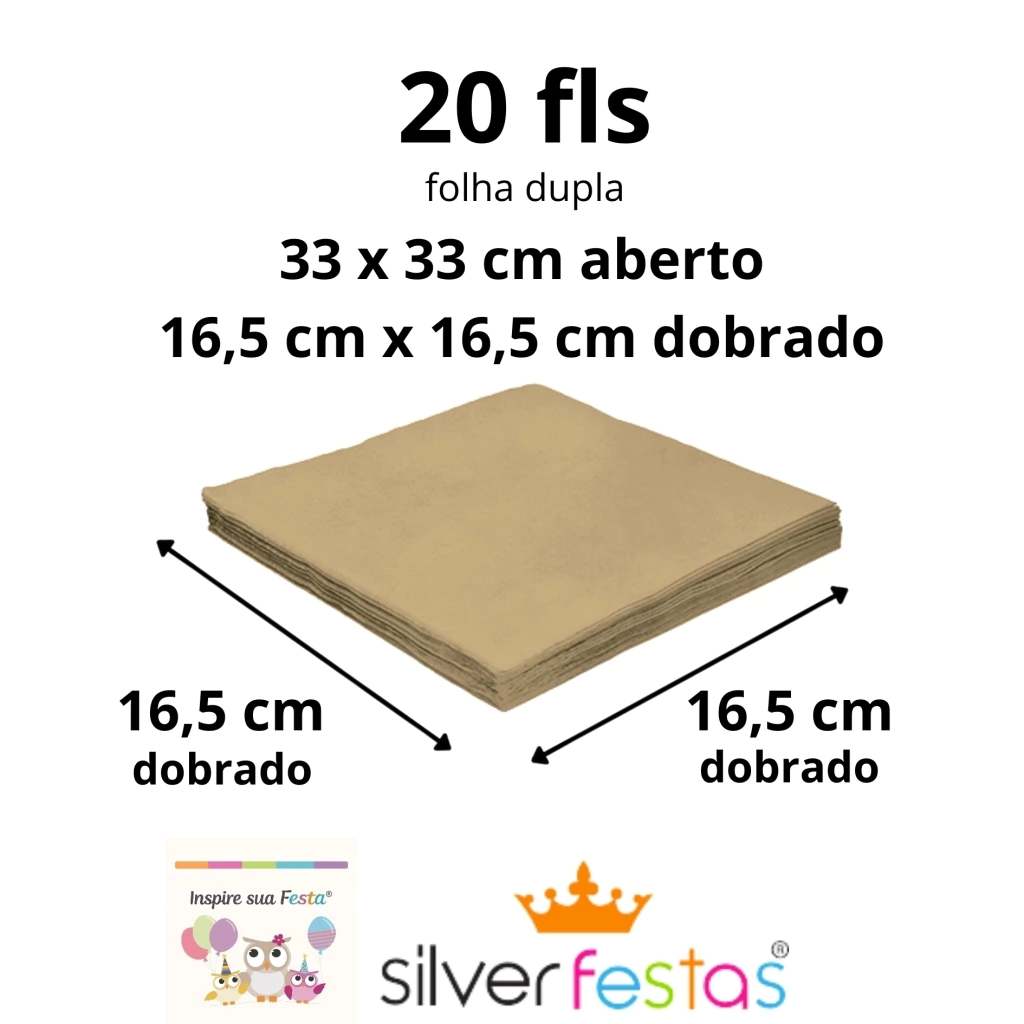 20 Guardanapos de Papel Dourado Liso 33x33cm Folha Dupla Silver Festa – Inspire Sua Festa Loja