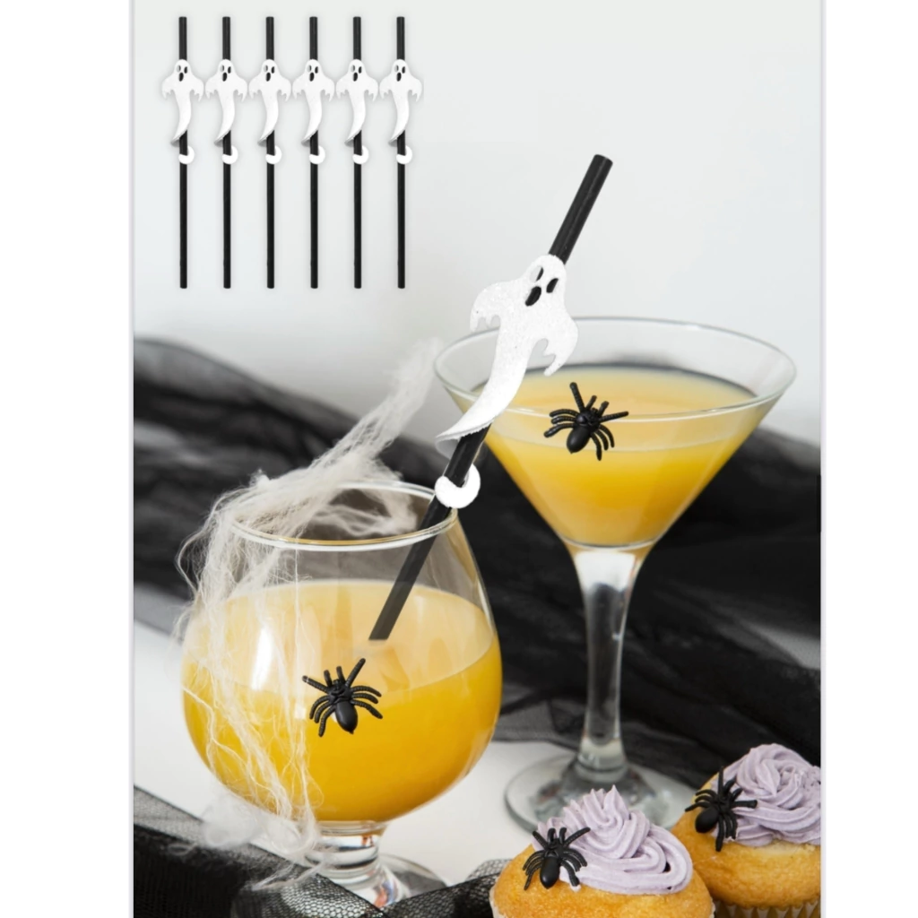 Perfeito para dar um toque divertido e elegante às bebidas da sua festa de Halloween. O detalhe em EVA com glitter deixa a decoração mais charmosa e temática.