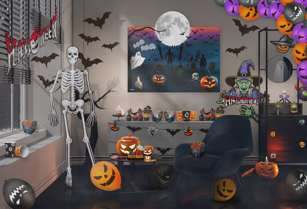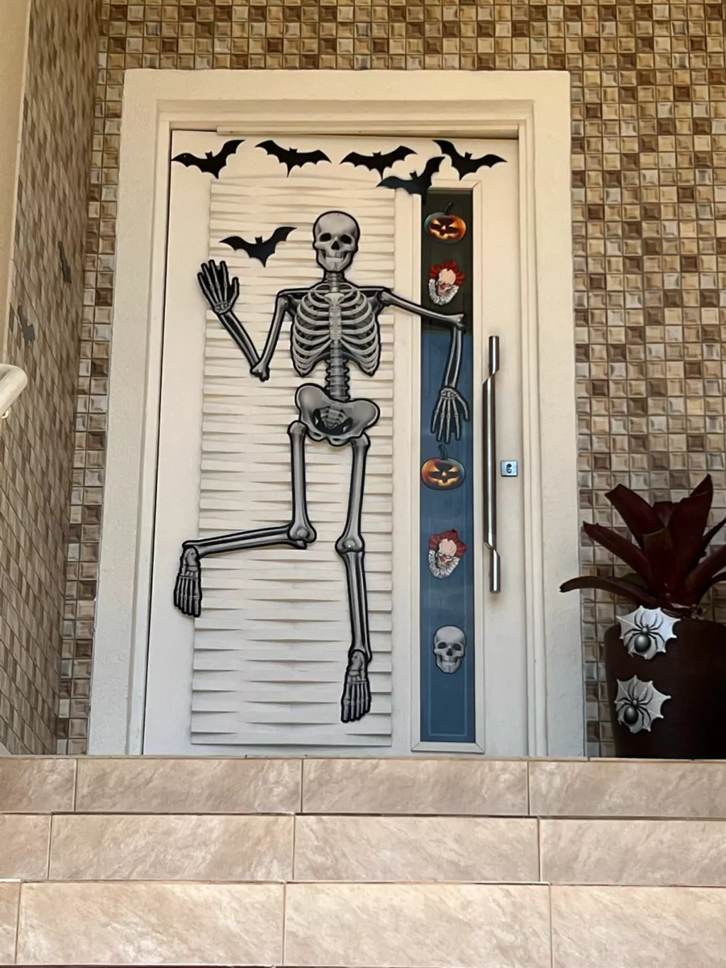 A decoração de parede Esqueleto Hallowenn é uma excelente opção para decorar a parede deixando sua festa ainda mais temática.