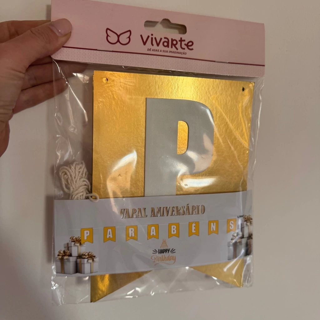 Dê um toque elegante e vibrante à sua festa com a Faixa Varal Parabéns em Papel Laminado com Letras em EVA da Vivarte!