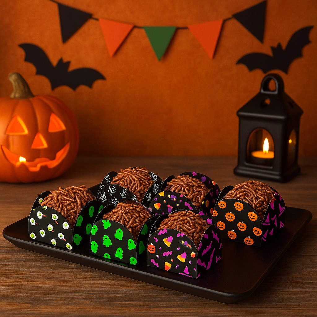 Forminha 4 Pétalas para Doces Halloween Nº7 – Fundo 3,2 × 3,2 cm | Placs Festas – 50 Unidades