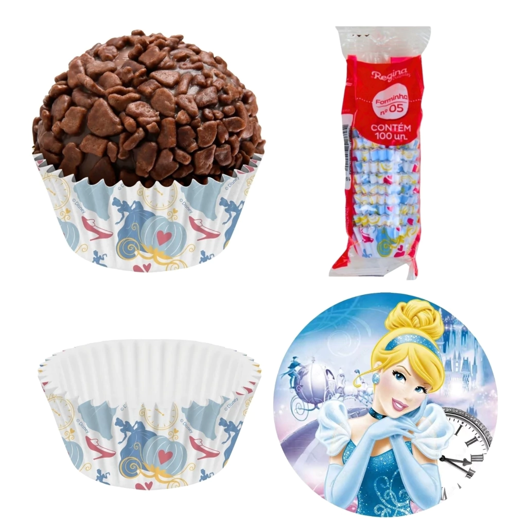 As Forminhas para Docinhos Nº 5 Cinderela da Regina Festas são perfeitas para deixar a mesa de doces ainda mais delicada, encantadora e temática! Com estampa oficial da princesa Cinderela e elementos do conto clássico, elas valorizam a apresentação de brigadeiros, beijinhos, cajuzinhos, olho-de-sogra, dois amores e outros docinhos tradicionais, trazendo o charme e a magia da Disney para a festa infantil.