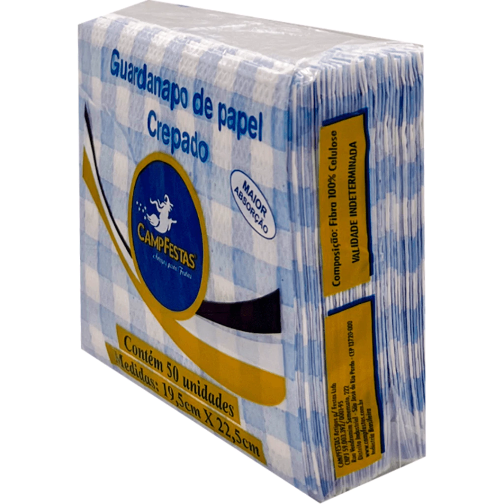 Deixe sua comemoração ainda mais bonita e organizada com os guardanapos crepados CampFestas xadrez azul claro.