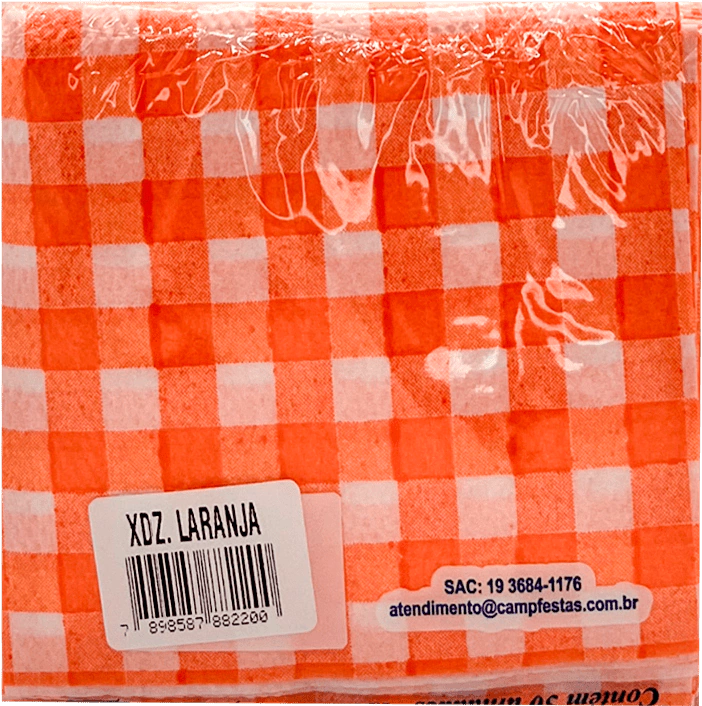 1 Pacote com 50 fls de Guardanapo Crepado Xadrez Laranja 19,5x22,5cm CampFestas - Inspire sua Festa