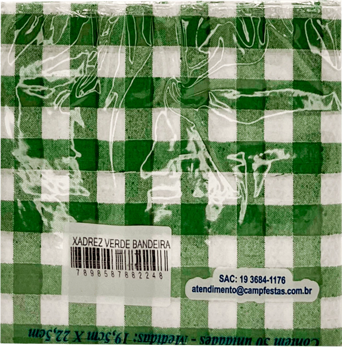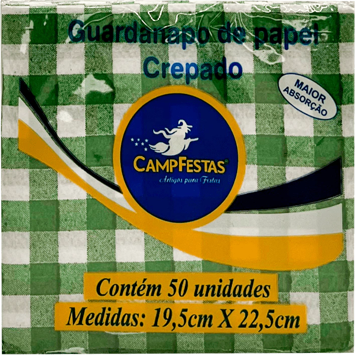 Deixe sua comemoração ainda mais completa com os guardanapos crepados CampFestas xadrez verde bandeira.