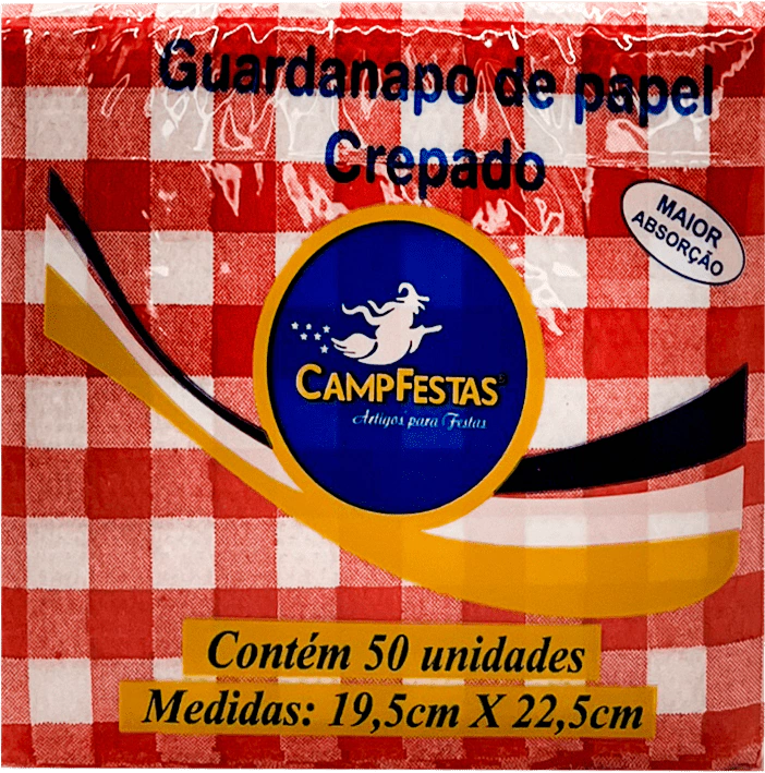 Deixe sua festa ainda mais charmosa com os guardanapos crepados CampFestas xadrez vermelho.