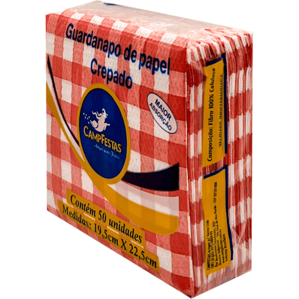 O guardanapo crepado xadrez vermelho CampFestas é perfeito para complementar a mesa da sua festa com praticidade e charme.