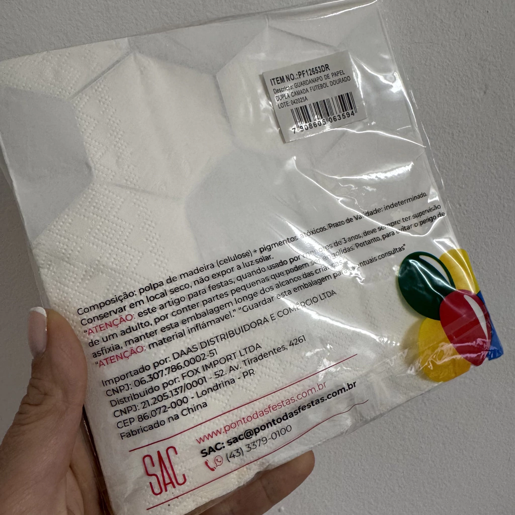 Guardanapo de Papel Folha Dupla Futebol Dourado 33x33 cm – Ponto das Festas