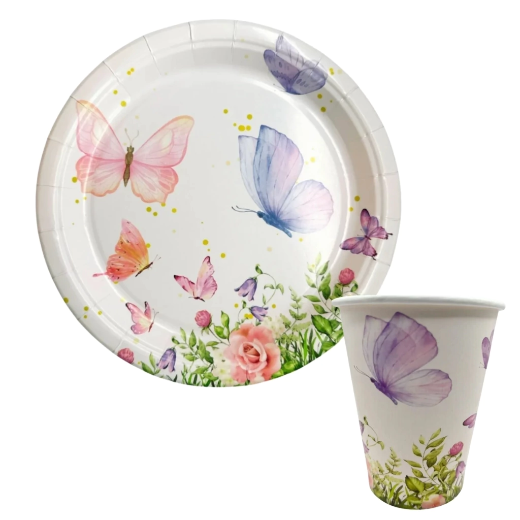 Kit 8 Copos + 8 Pratos de Papel Festa Jardim das Borboletas - Ponto das Festas - Inspire Sua Festa Loja