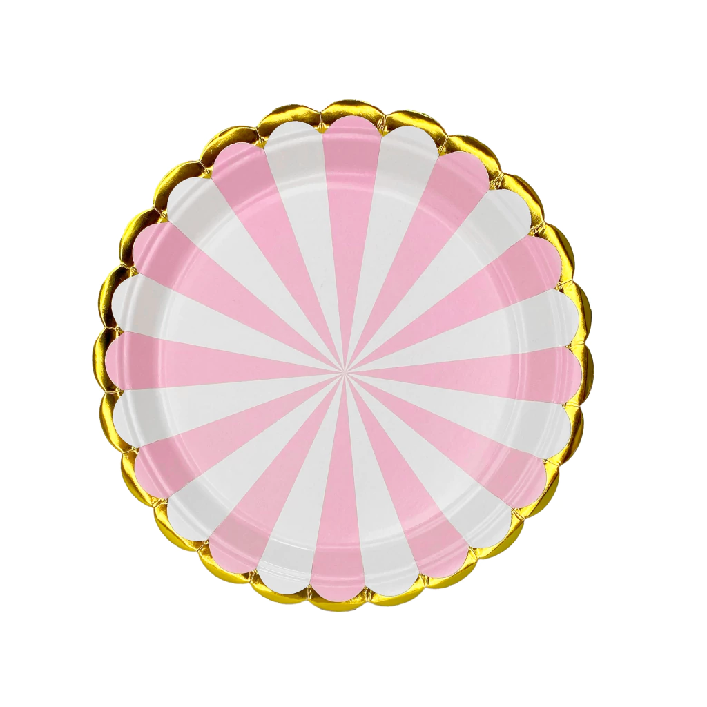 Kit 8 Pratos de Papel Decorados Leque com Borda Dourada 18 cm – Inspire sua Festa Loja