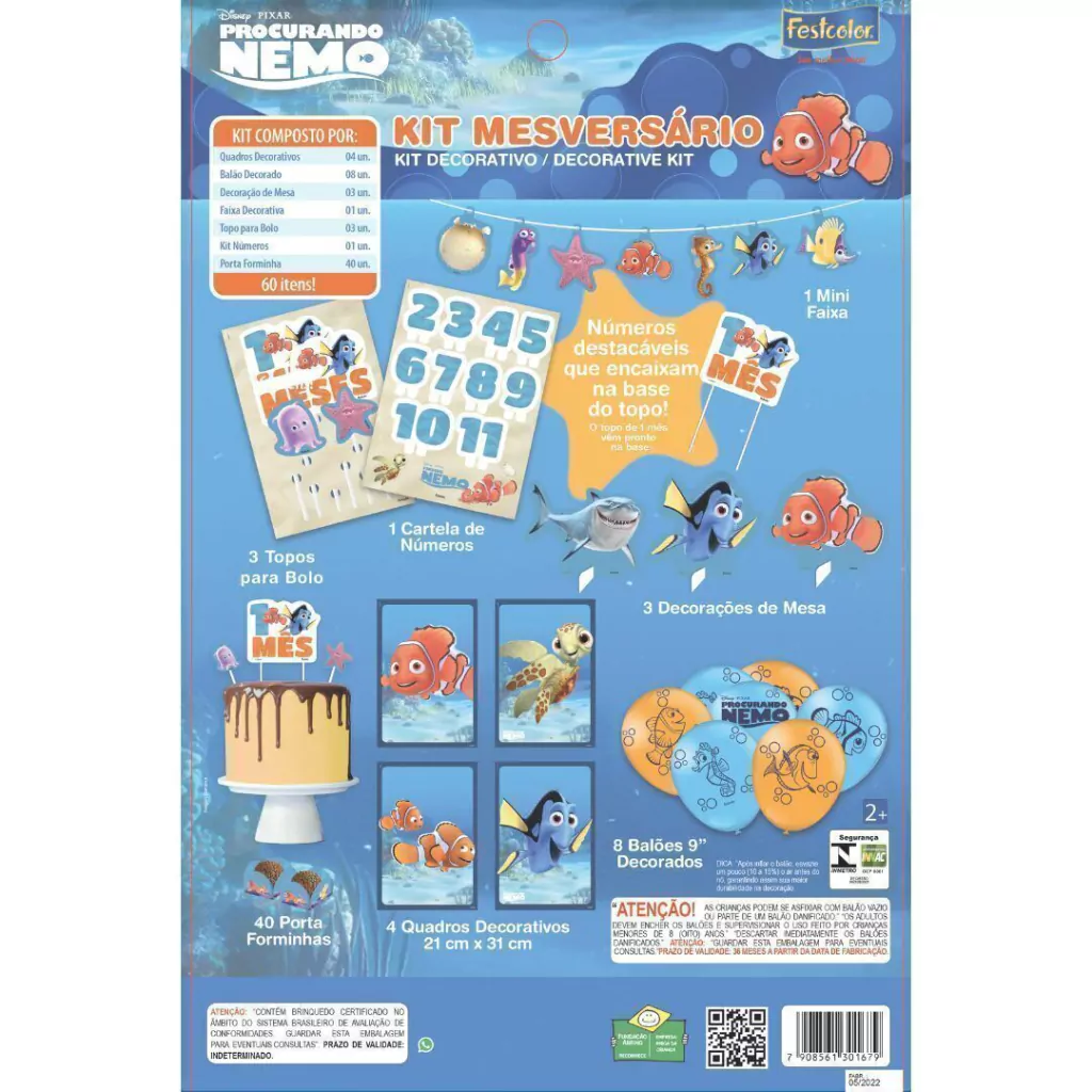O Kit Mesversário é composto por 01 pacote. Cada pacote é composto com 60 peças distribuídas em 07 tipos de produtos.