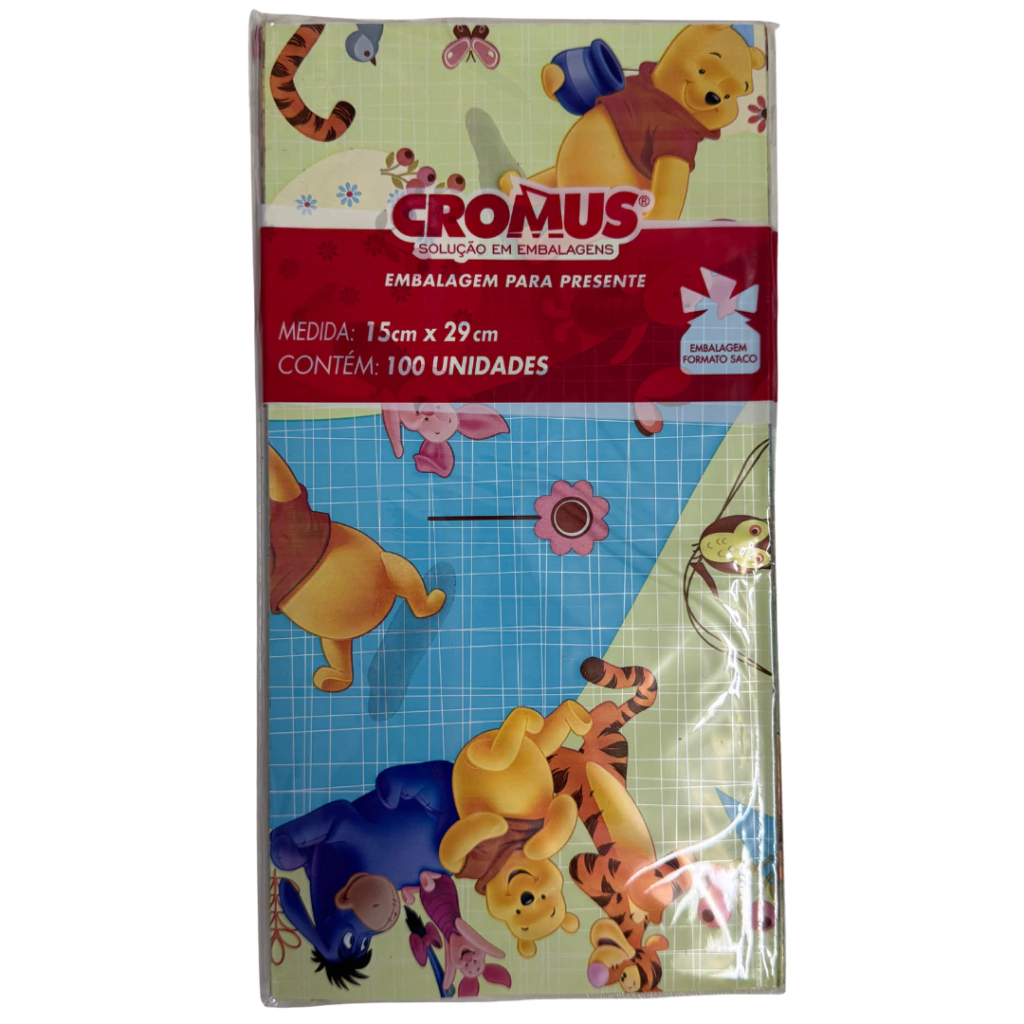 A Sacola Ursinho Pooh da Cromus é ideal para lembrancinhas de festas infantis, aniversários, chás de bebê e eventos temáticos. Com estampa delicada e acabamento de qualidade, é perfeita para acomodar doces, brinquedos e pequenos presentes, deixando a entrega ainda mais especial.